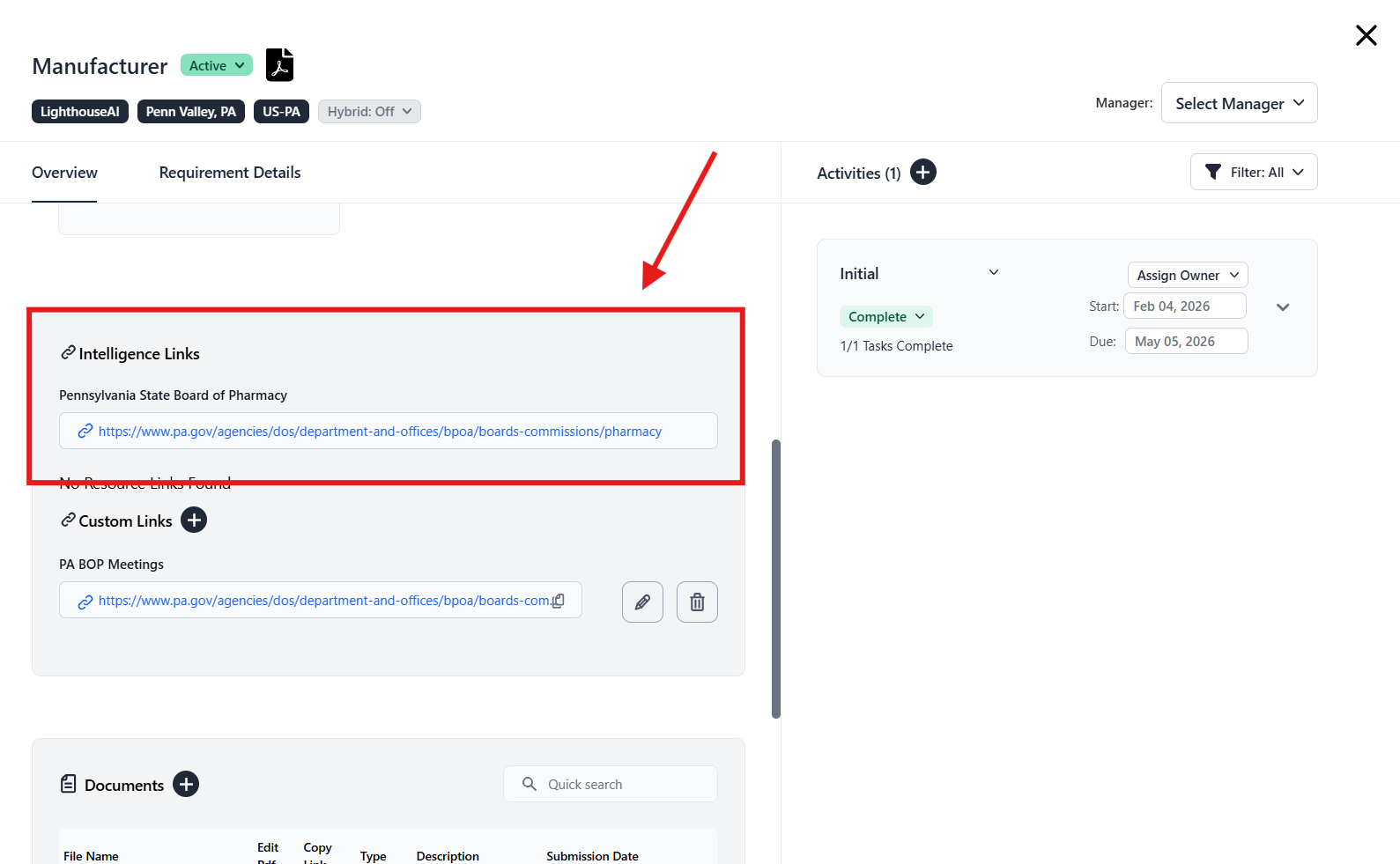 We have consolidated Custom Links and Intelligence Links into the Requirements Overview, enabling users to associate and track relevant links with their respective Requirements.