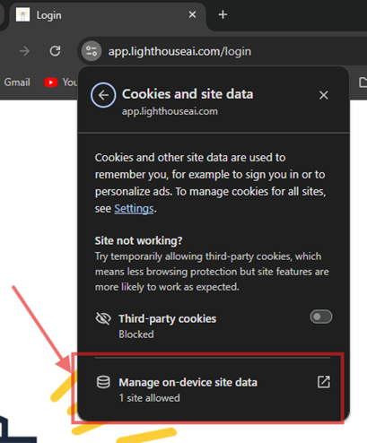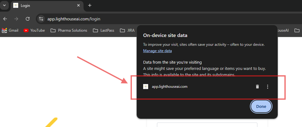Please follow these instructions to clear your page app data and access LighthouseAI without a hassle: