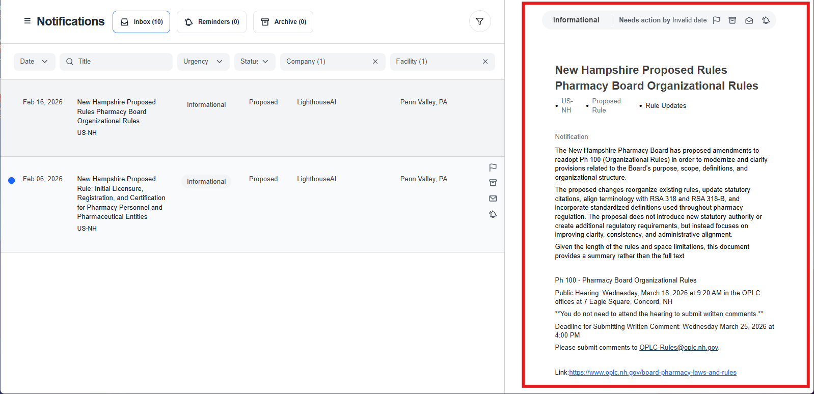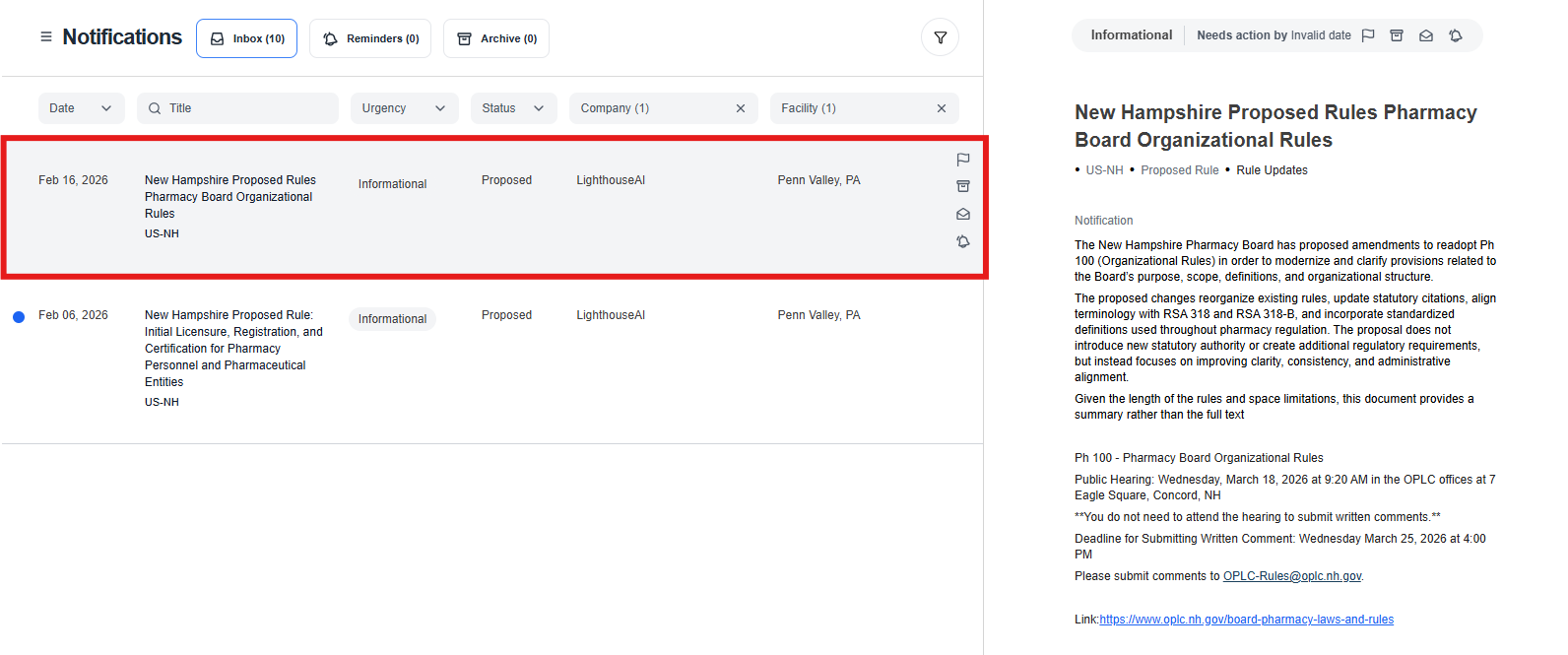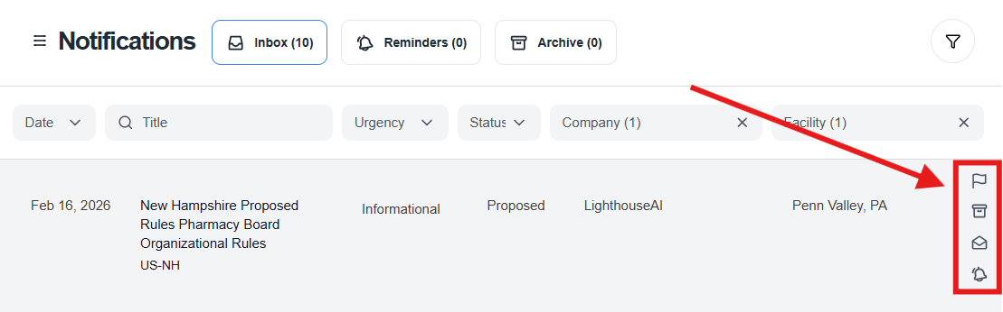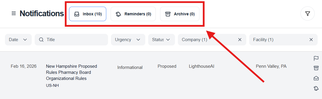 Notifications 2.0 is designed to give you more clarity, more control, and a more intuitive experience. With consolidated notifications, flexible reminders, improved sorting and filtering, and a cleaner layout, it’s easier than ever to stay ahead of regulatory changes and take action on your own timeline.